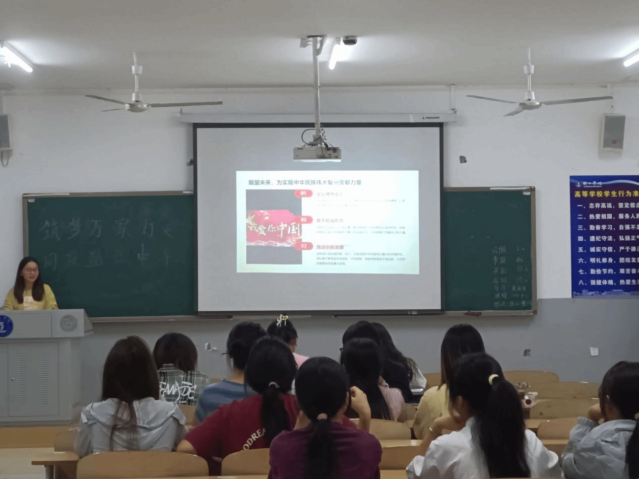 2024 年 9 月 23 日,文学与传媒学院于依仁楼A开展第五周主题班会。此次班会以“筑梦灯火万家,同庆盛世中华”为主题,旨在培养学生爱国主义情怀,引导学生勇担时代使命。