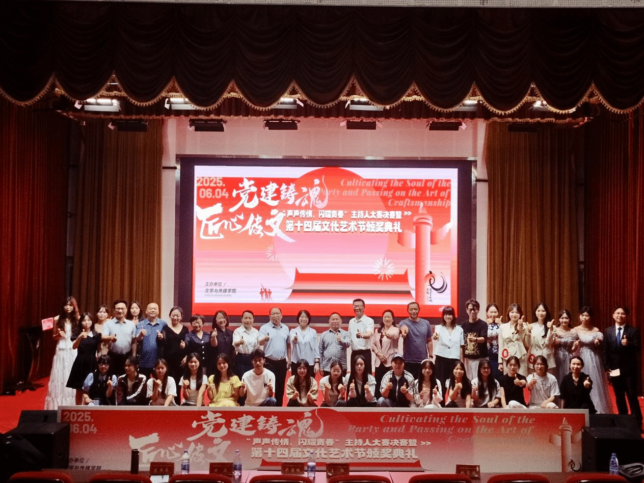为深入贯彻党的教育方针,大力推进校园文化建设,充分展现文传学子的青春活力与专业风采,我院以“党建铸魂·匠心传文”为主题举办了第十四届文化艺术节。自4月8日启动以来,各项活动有序开展,历经两个月圆满收官。6月4日晚,“声声传情,闪耀青春”主持人大赛暨第十四届文化艺术节颁奖典礼在人文生态馆盛大举行,为此次系列活动画上完美句号。