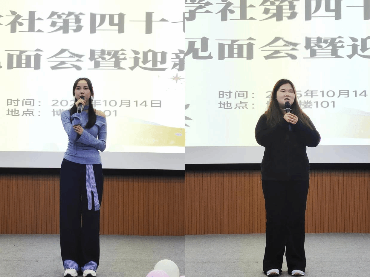 随后,前后两位社长戴梦娇、罗应焱结合自己在社团的经历,分享了与社员们的温暖故事,话语里满是对社团的归属感:“在这里不用拘谨,多和身边的伙伴聊聊文字、谈谈想法,总能找到志同道合的朋友。”