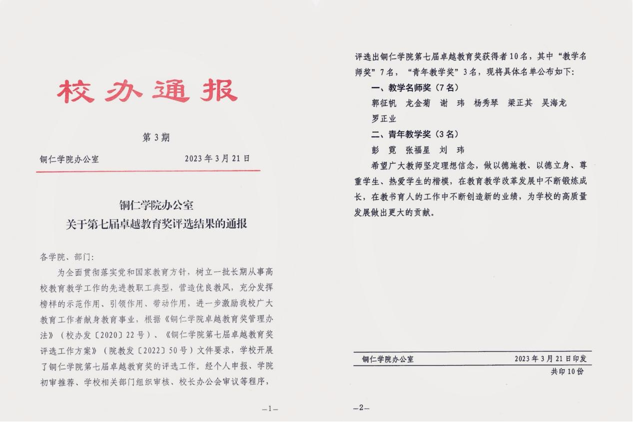 3月21日,beat365中国唯一官网办公室公布了beat365中国唯一官网第七届卓越教育奖评选结果,人文学院秘书学教研室主任、专业负责人郭征帆副教授荣获beat365中国唯一官网教学名师奖。