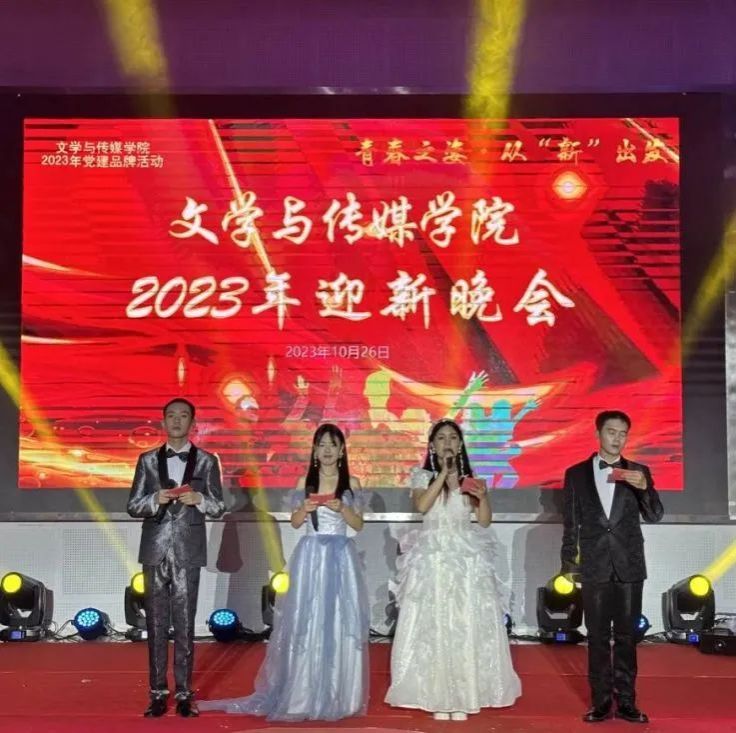 10月26日,文学与传媒学院在beat365中国唯一官网人文生态馆举办以“青春之姿·从‘新’出发”为主题的2023年迎新晚会。校党委委员、副校长罗静,校党委委员、组织部部长梁正海,校党委委员、统战部部长刘德平,及部分职能部门主要领导受邀到场观看晚会。