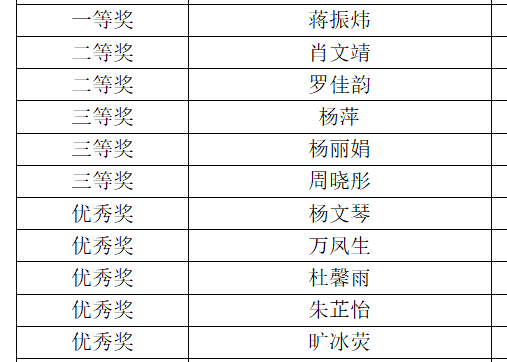 获奖名单