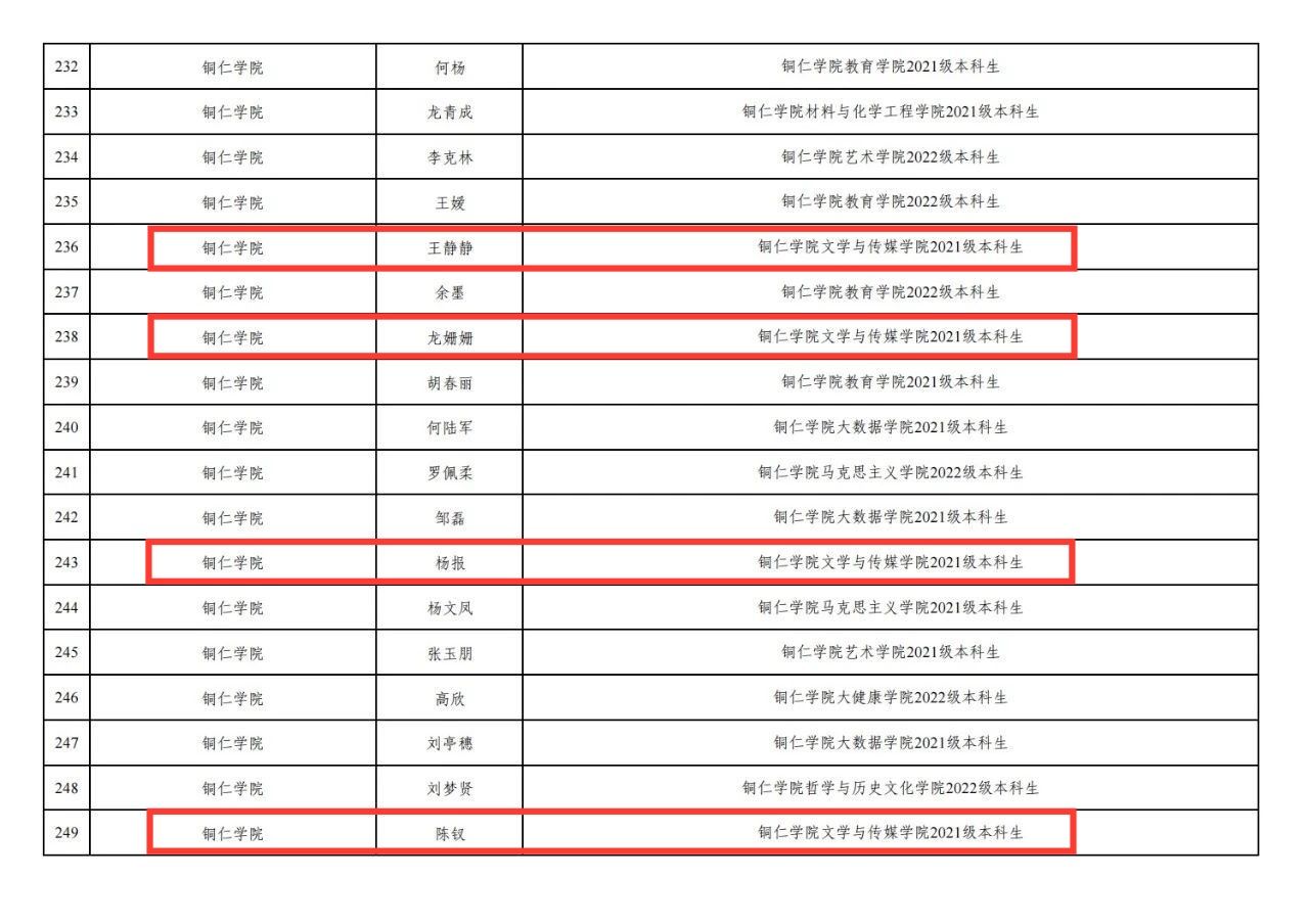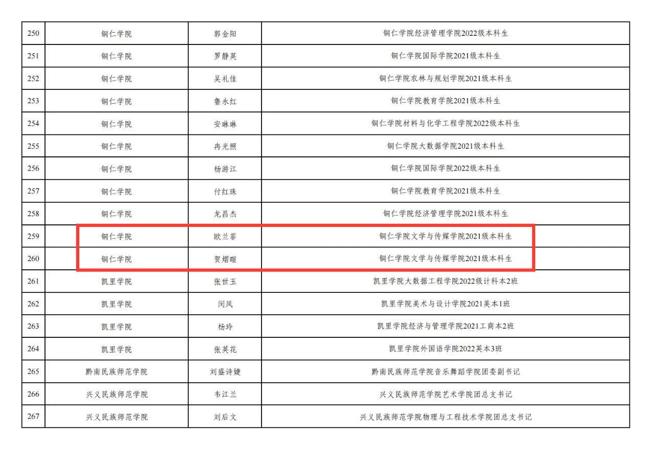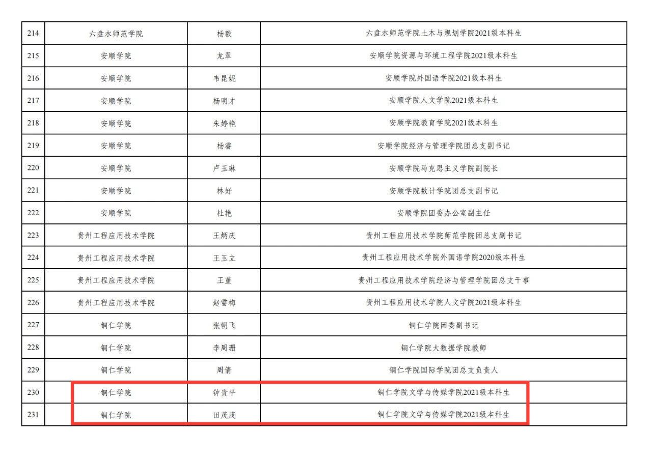 2023年贵州省“三下乡”社会实践优秀个人公示名单↑