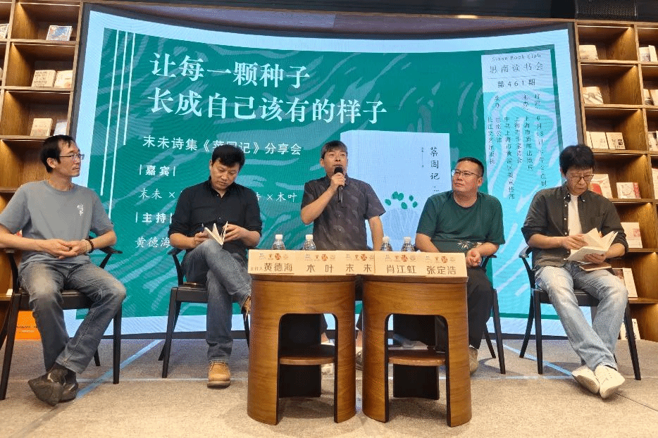 此次活动由上海市新闻出版局、上海市作家协会、中共上海市黄浦区委宣传部联合主办,思南公馆、长江文艺出版社联合承办。分享会上,各位嘉宾对《菜园记》的文本进行了深入探讨,分别朗诵了末未的诗歌。现场气氛热烈,末未一一回答了读者的提问。