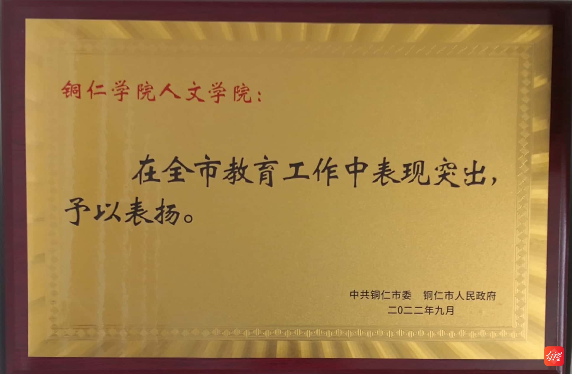 近五年来,学院获多项校级及以上表彰。2019年11月,铜仁市委教育工委对人文学院3个党支部进行标准化验收,合格率为100%;2021年教工第一党支部被学校确立为样板党支部创建单位;2021年获学校“科研工作先进集体”“师范专业认证工作先进单位”称号;有40余教师获“优秀共产党员”“优秀党务工作者”“优秀教师”“优秀教育工作者”称号。