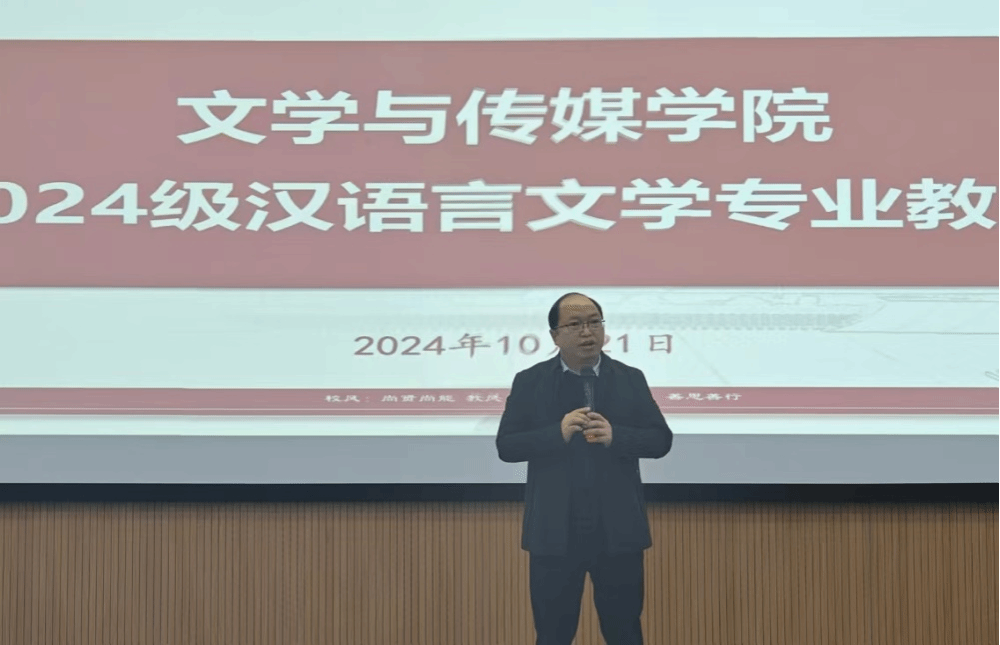 10月21日,文学与传媒学院在博思楼101成功举办2024级汉语言文学专业入学教育大会,学院党委书记、院长孙向阳,党委副书记杨雪,副院长张建刚、蒋小红以及汉语言文学专业全体教师出席了本次会议,会议由中文系主任王棋君主持。