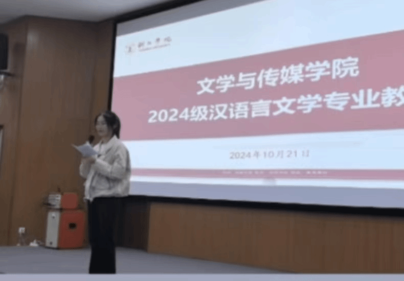 会上,汉语言文学专业负责人李子芯介绍专业的学科特点和学位授予条件,详细讲解专业的师范性与实践性,同时,着重强调了三字一话与体能测试的重要性,增进了新生对专业的理解。