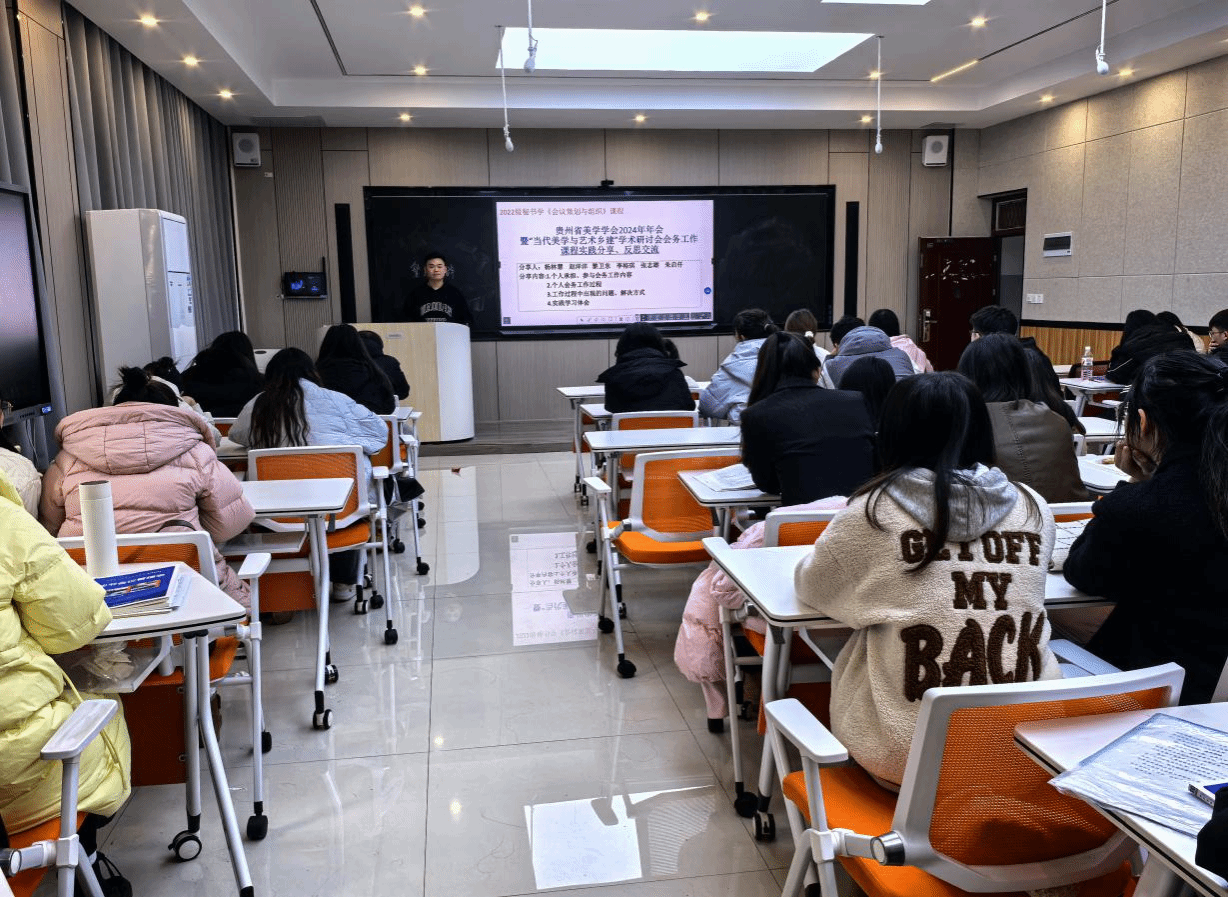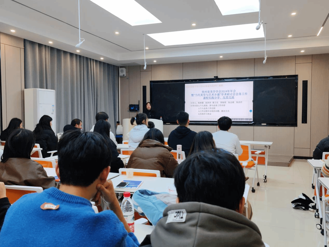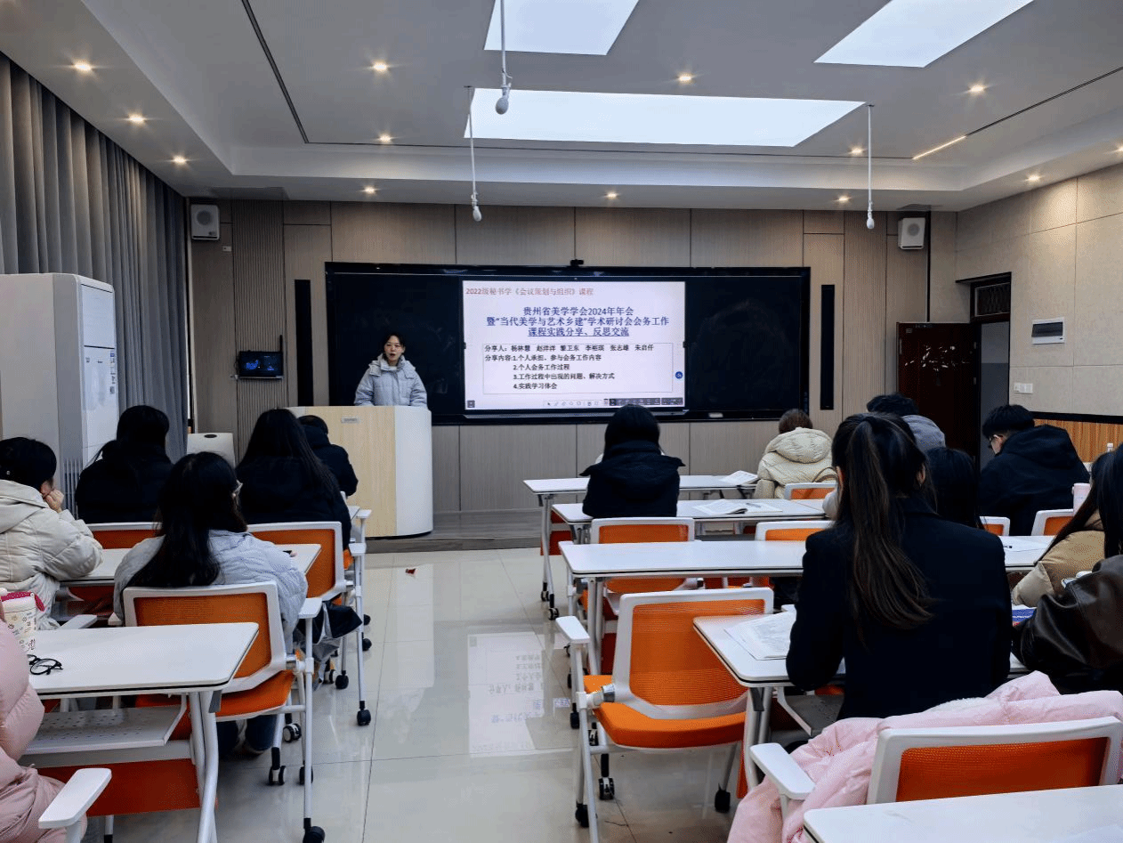 12月6日,2022级秘书学专业在会议策划与组织课程任课教师杨雪的组织下,围绕贵州省美学学会2024年年会暨“当代美学与艺术乡建”学术研讨会开展了会务工作案例实践分享、反思交流活动。