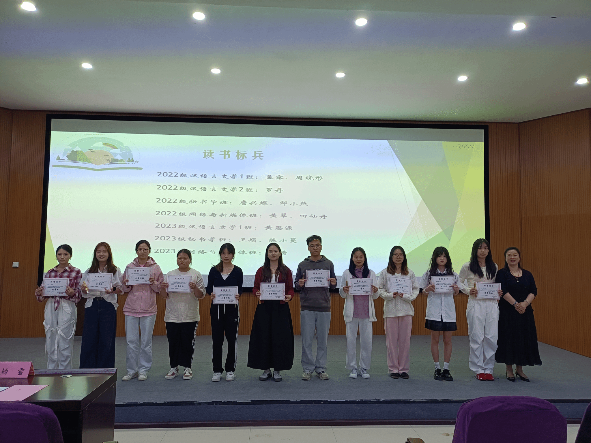 本届读书文化节开展了“悦读时光,共品书香”班级读书交流会、“寻迹黔山秀水·书写文化新章”主题现场作文大赛、“我与春天有个约会”主题朗诵比赛、新书分享会、文学趣味漫步等系列活动。学院全体师生都积极参与其中,参与总人次达400人次以上。评选出“阅读之星”包含“书香班级”5个、“阅读达人” 5人 、“读书标兵”11人、“写作能手”7人、“优秀朗诵者”团队(个人)共28人。此次读书文化节“阅读之星”颁奖仪式,不仅为第三届读书文化节画上了圆满句号,更是持续在师生心中种下阅读的种子。