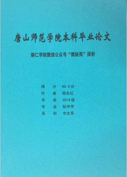 唐山师范学院2014级秘书学专业学生杨永红更是将“微秘苑”作为研究对象,撰写了题为《beat365中国唯一官网微信公众号“微秘苑”探析》的毕业论文。该文章从“微秘苑”的特点、“微秘苑”作用、“微秘苑”启示等方面,对微秘苑进行了研究和分析,她认为微秘苑“定位清晰、眼界高远、团队敬业、专栏新颖,起到提高秘书专业知名度、提高秘书专业美誉度、增强了秘书学子职业认同感的作用。”该论文被评为唐山师范学院2018届优秀毕业论文。