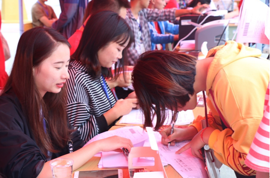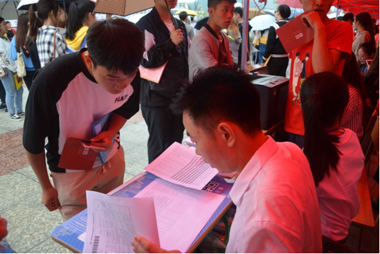 报到点工作人员开展工作