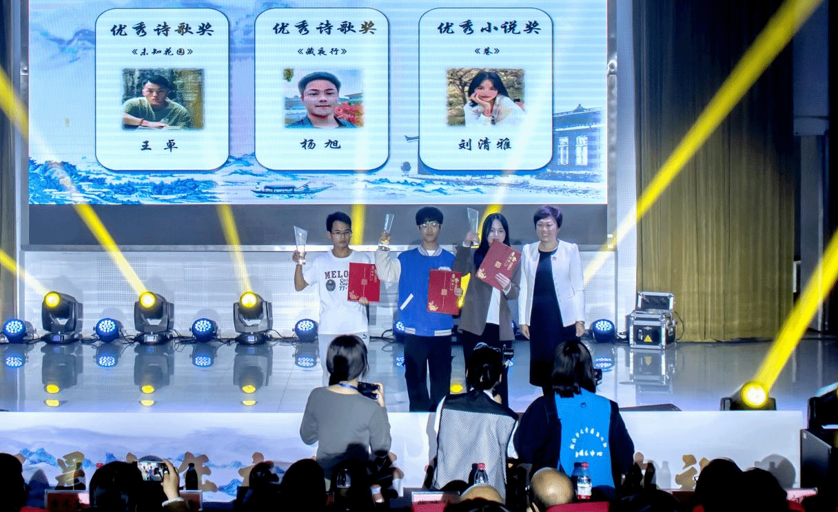 朱克乾、张映姝、安元奎分别为获奖同学颁发荣誉证书和奖杯。颁奖典礼上,写作研究院写作研究中心主任庄鸿文代表指导老师致辞,安元奎代表评委讲话,蒋炜代表获奖者发言,学生们还表演了丰富多彩的文艺节目。