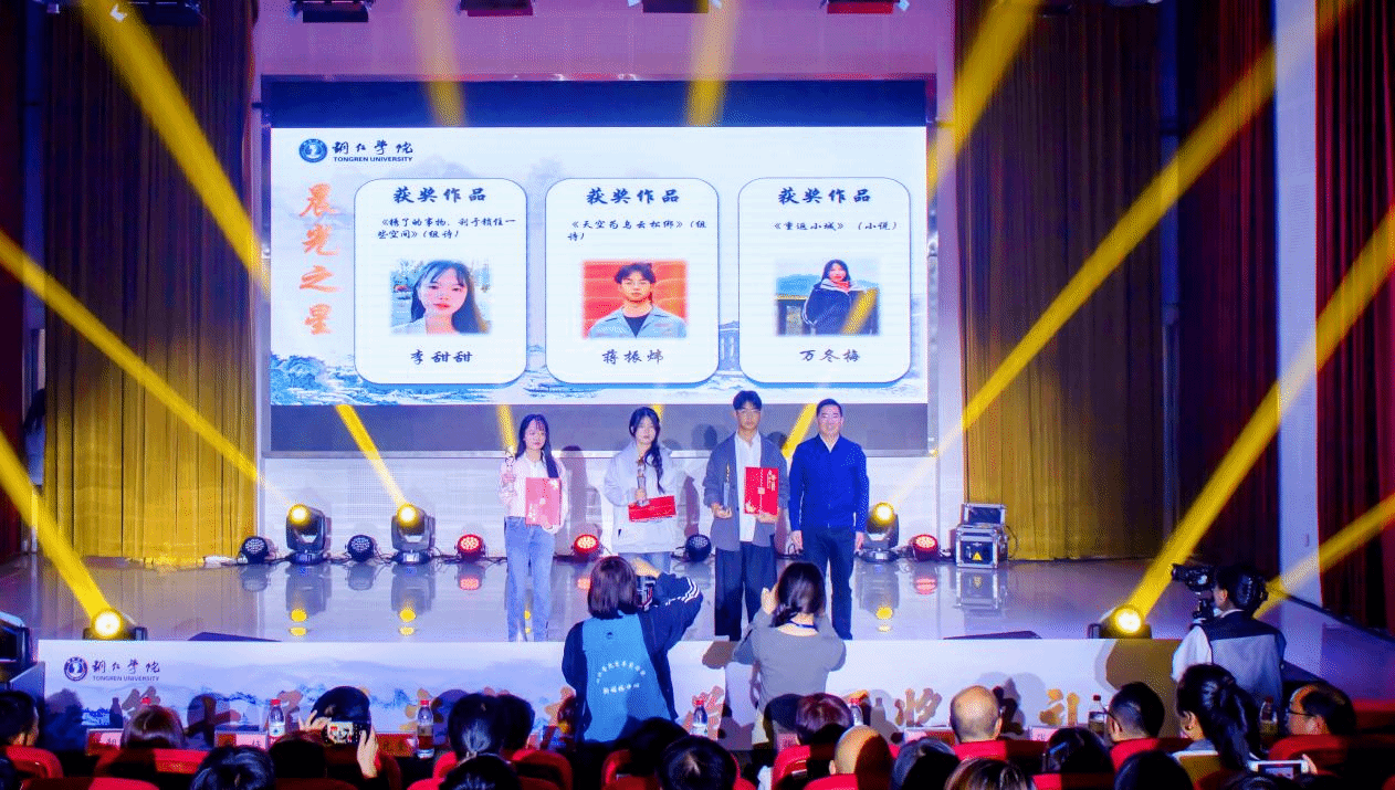 10月24日下午,beat365中国唯一官网梵净人文生态馆灯光璀璨,气氛热烈。随着学生声情并茂的诗朗诵《中文之美》,一年一度的晨光文学奖颁奖典礼拉开了帷幕。