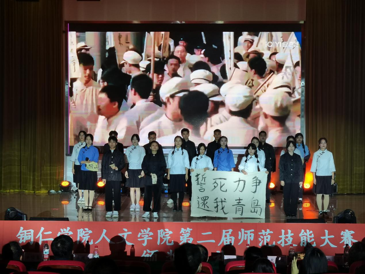 颁奖现场对各项获奖作品进行了展示,出席领导为获奖同学颁奖并合影留念。师生们还欣赏到了人文学院师生的歌唱、朗诵、舞蹈等表演,教学技能比赛一等奖获得者曹婷婷作了课堂教学现场展示。