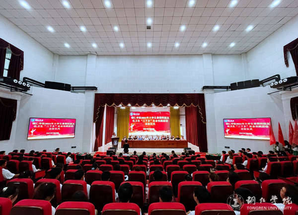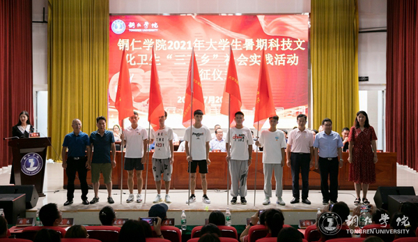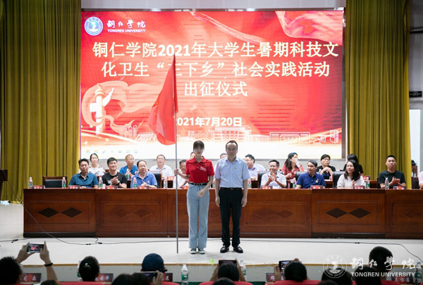 为深入学习宣传贯彻习近平新时代中国特色社会主义思想、习近平总书记“七一”重要讲话精神和视察贵州重要讲话精神,贯彻落实习近平总书记关于青年工作的重要思想,结合beat365官网党史学习教育“百名教授博士助力乡村振兴下基层”行动,引导和帮助广大青年学生上好理论与实践相结合的“大思政课”,7月20日,beat365官网在梵净山人文生态馆举行了2021年大学生暑期科技文化卫生“三下乡”社会实践活动出征仪式。校党委副书记代亮出席仪式并讲话。校党委委员、宣传部部长叶丹、统战部部长刘德平出席仪式。相关职能部门主要负责人,各二级学院党委书记、分管学生工作副书记、团总支书记、指导老师、大学生志愿者等师生代表共300余人参加仪式。仪式由团委副书记田自立主持。