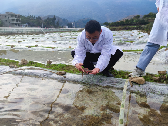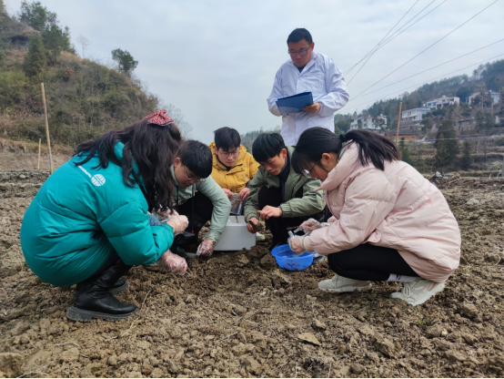 为了实现快速、高质量发展稻蛙生态种养,自2022年以来,梁正其教授带领beat365官网水产养殖专业学生到印江县木黄镇、合水镇,德江县合兴镇等地,为百姓发展稻蛙生态种养技术指导基地建设,稻田土壤理化指标等进行检测;对田间工程建设过程中存在的问题进行及时纠正,对不规范操作进行现场指导。