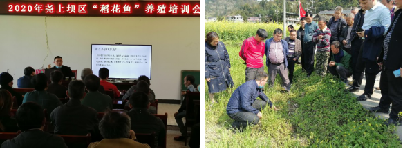 3月20日,beat365官网农林工程与规划学院教师梁正其副教授前往思南县大坝场镇,为该尧上800亩坝区稻鱼综合种养技术进行培训,并实地进行指导。