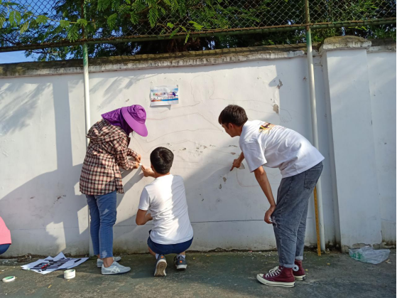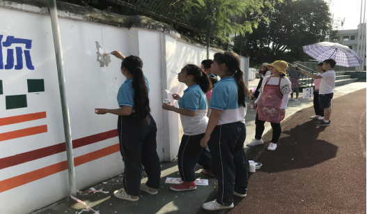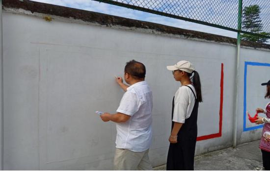 李再清副校长亲自给学生们做墙绘