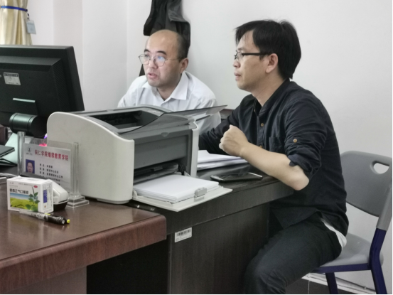 与继续教育学院社会服务科科长袁继文交流现场