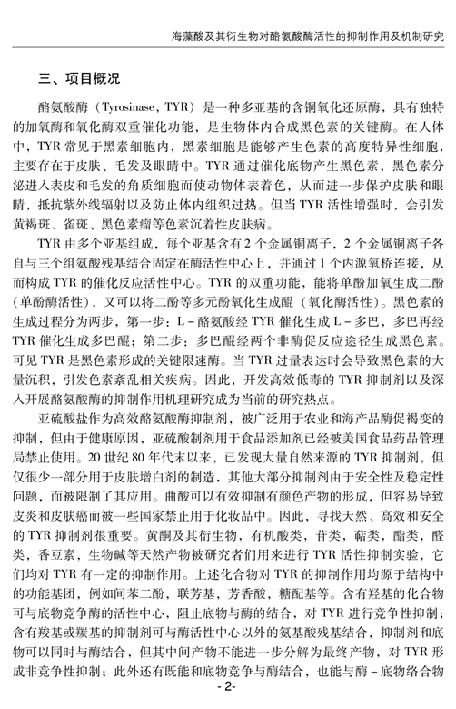 海藻酸及其衍生物对络氨酸酶活性的抑制作用及机制研究