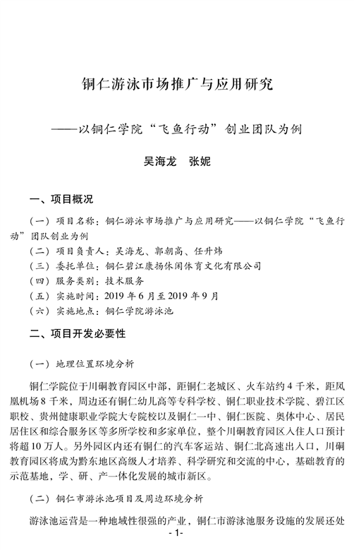 铜仁游泳市场推广与应用研究——以beat365中国唯一官网“飞鱼行动”创业团队为例