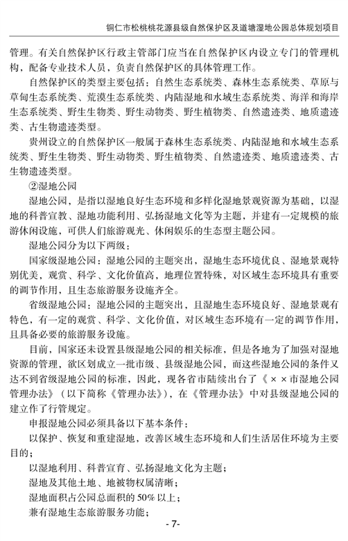 铜仁市松桃桃花源县级自然保护区及道塘湿地公园总体规划项目