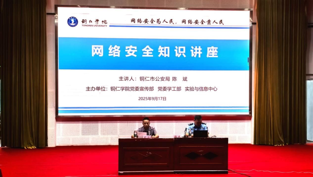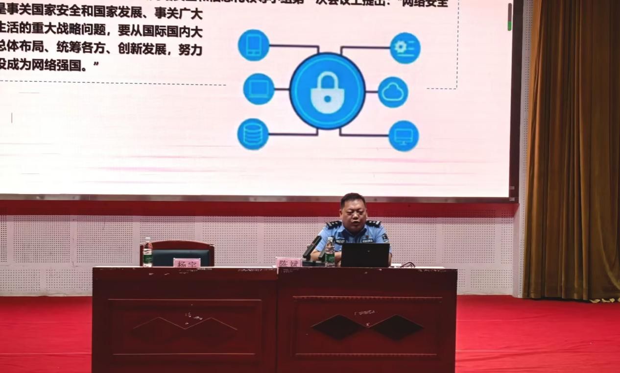 为切实提升师生的网络安全意识和处置能力,筑牢网络安全屏障,根据beat365官网开展2025年国家网络安全宣传周工作总体安排,9月17日,beat365官网在梵净山人文生态馆举办了网络安全专题讲座,特邀铜仁市公安局网安支队技保大队大队长、市大数据专家陈斌警官为beat365官网师生进行网络安全及预防电信诈骗宣讲。实验与信息中心主任杨宇主持讲座。各部门和学院网站管理员、应用系统管理员,各学院学生代表近300人参加讲座。