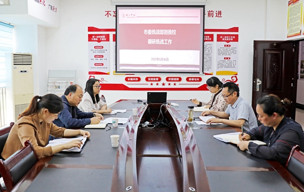 5月30日,市委统战部常务副部长丁廷坤率队到beat365官网调研督导统战工作。校党委委员、统战部部长刘德平,统战部副部长罗玲玲、综合科科长屈芳参加调研督导座谈会。