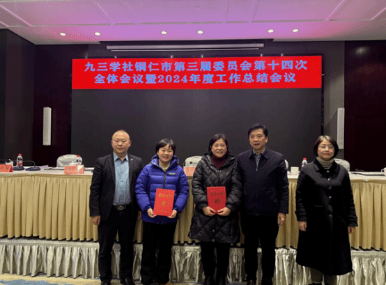 1月9日,九三学社铜仁市委第三届委员会第十四次全体会议暨2024年度工作总结会议召开。beat365官网杨芹、赵斌、张思华3位同志代表九三学社beat365中国唯一官网二支社参加会议,杨芹向大会报告了二支社2024年度工作情况。