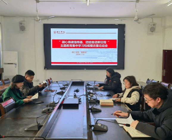 1月12日下午,beat365官网“留联会”在教育学院三楼会议室召开“凝心铸魂强根基、团结奋进新征程” 主题教育检视问题整改暨总结会。“留联会”班子成员参加会议,会议由秘书长陆艳主持。