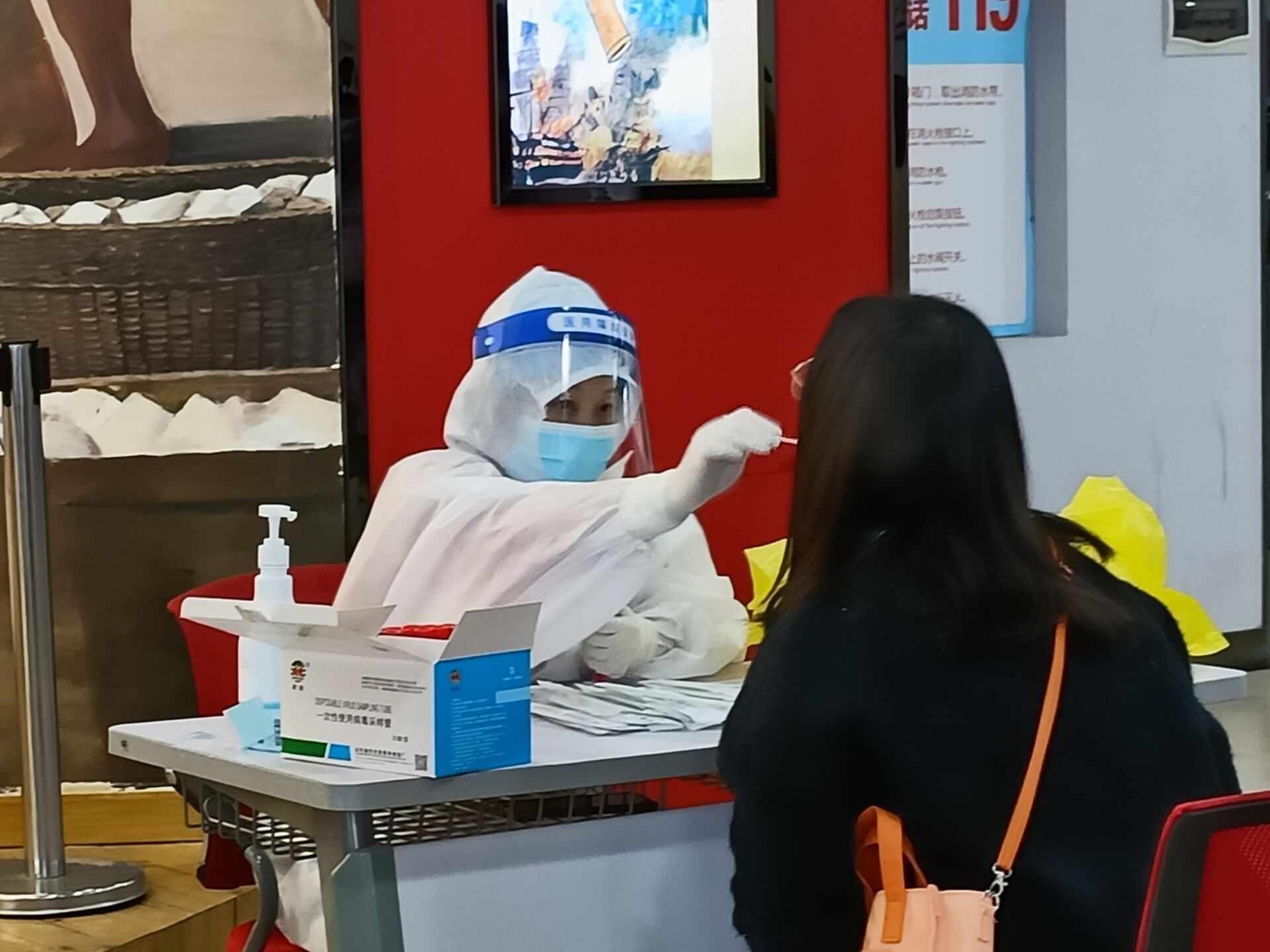 在核酸采集现场,医务人员身着防护服,反复进行试管贴签、消毒洗手、采集咽拭子、现场采样装管等规范操作,耐心引导受检师生按照核酸检测要求配合完成每项流程。检测完毕,各班主任引导学生立即返回班级。