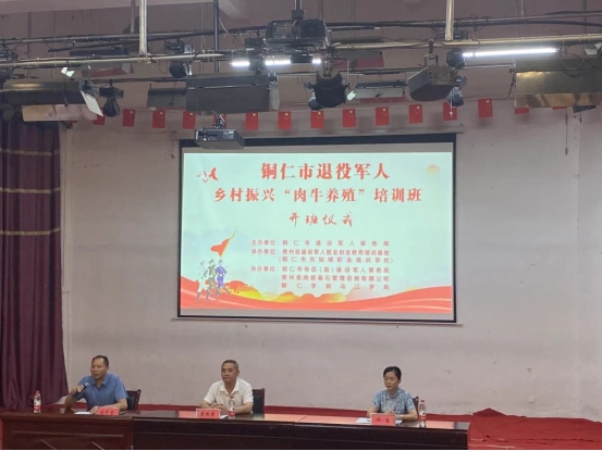 8月9日上午,铜仁市退役军人乡村振兴“肉牛养殖”专班开班仪式在beat365中国唯一官网乌江学院举行。铜仁市退役军人事务局党组成员副局长曾杰希、市退役军人事务局移交安置科科长刘华宣、铜仁市灰姑娘职业培训学校校长姚洁出席开班仪式。