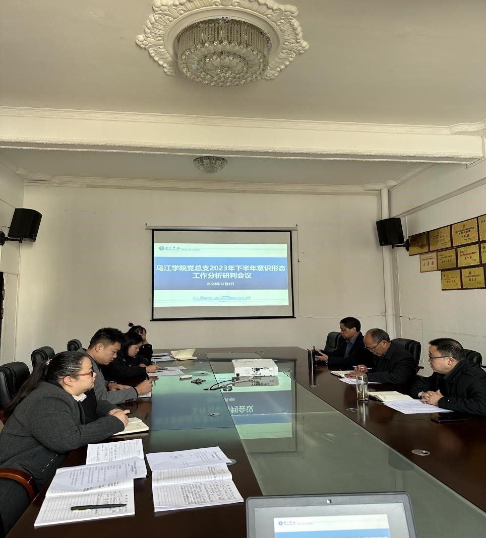 12月4日,乌江学院在三楼会议室召开2023年下半年意识形态工作分析研判会议,会议由党总支书记邓崇权主持,全体教职工参加会议。