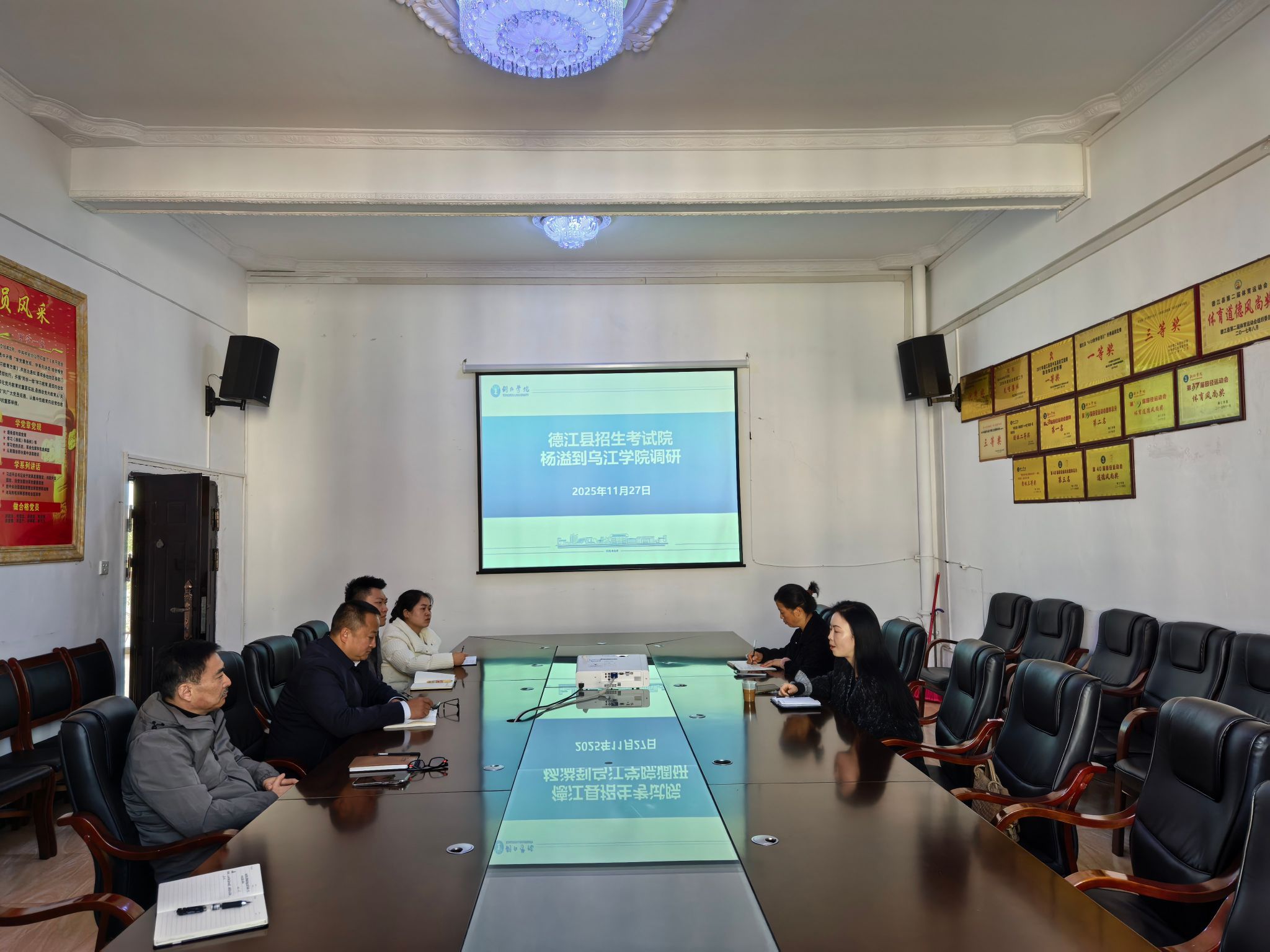 11月27日,德江县招生考试院杨溢院长一行到乌江学院,就德江县研学点规划与特色课程开发工作进行专题调研。乌江学院副院长李念(主持工作)、王红兵,全体教职工参加调研会议。