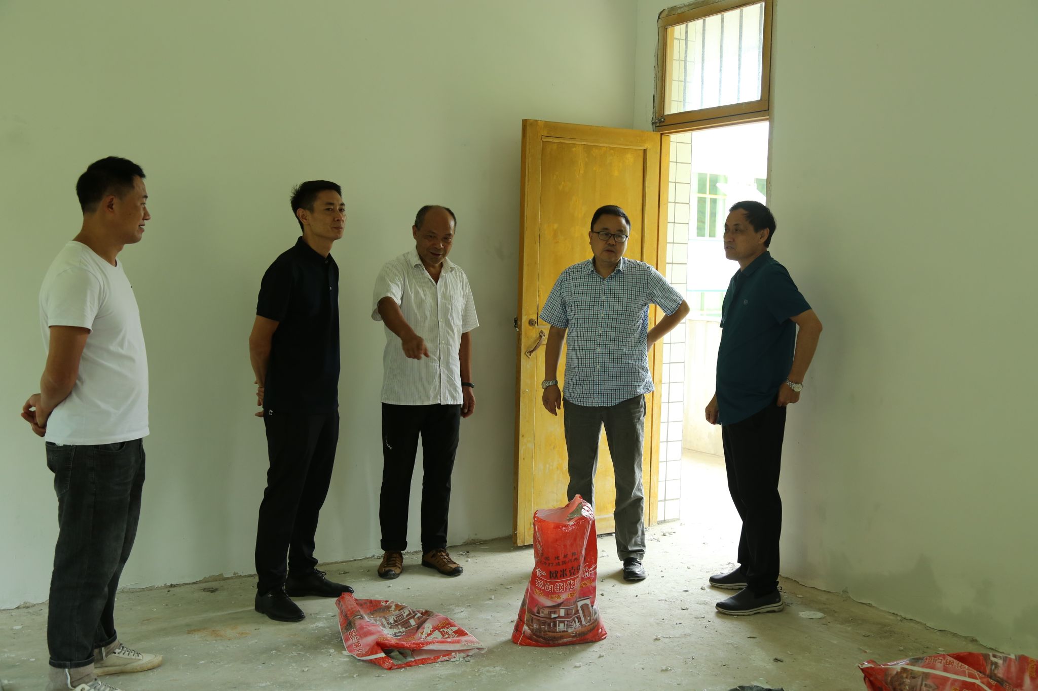 调研组一行实地走访了劳动教育基地的规划建设,现场有不少工人正在对老旧校舍进行改造和美化,基地施工负责人介绍了功能区域规划、施工进展和施工难度情况。