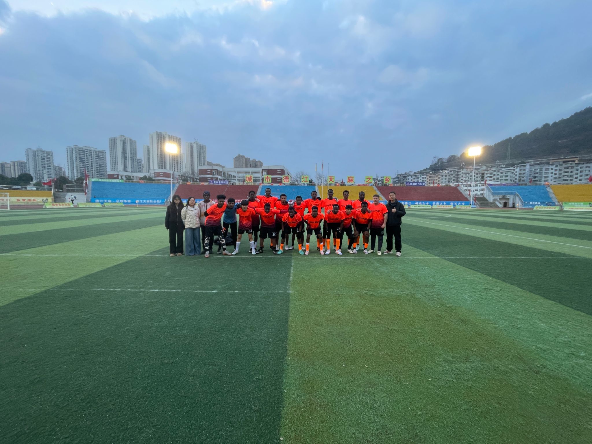 为丰富留学生课余生活,搭建中外文化交流桥梁,2月2日,beat365中国唯一官网乌江学院组织20名留学生代表参与德江县第十一届“迎春杯”DY足球赛。来自尼日利亚、苏丹、索马里、老挝、加蓬等10个国家的学子们,以足球为媒,在绿茵场上与德江足球爱好者同场竞技,展现青春活力与国际友谊。