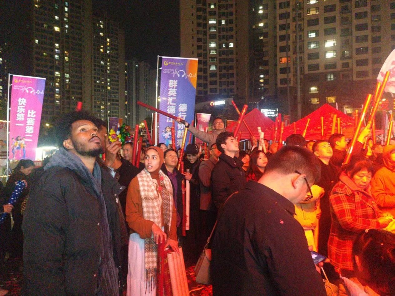 德江县倾情打造的“贵州音乐时光”文化品牌节目2025年度总决赛在玉溪河畔西麓阁如期举行。该文化平台以音乐为魂、以赛事为媒、以经济为体,历经层层选拔,众多音乐发烧友齐聚天麻之乡,用激昂旋律点燃岁末文旅热潮。总决赛现场氛围热烈,来自异国的百余名国际学生化身观众融入现场,与众多观众共同沉浸于音乐氛围之中。他们有的围坐在一起交流对赛事的感受,有的与市民并肩欢呼。不同文化背景的观众因音乐而相聚,使赛场成为了一个中外文化交流的小型舞台。乌江学院师生表示,能亲临总决赛现场,既感受到了本土音乐的魅力,也见证了家乡以文化赛事撬动发展的新路径。外籍学生坦言,这场充满活力的音乐盛会,让他们感受到了中国、贵州、德江独特的文化底蕴与发展活力。