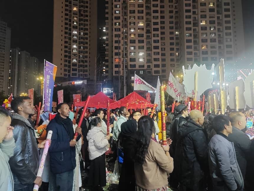 2025年12月30日晚,乌江学院百余名国际学生助阵“贵州音乐时光”,为年度总决赛歌手们加油助威。