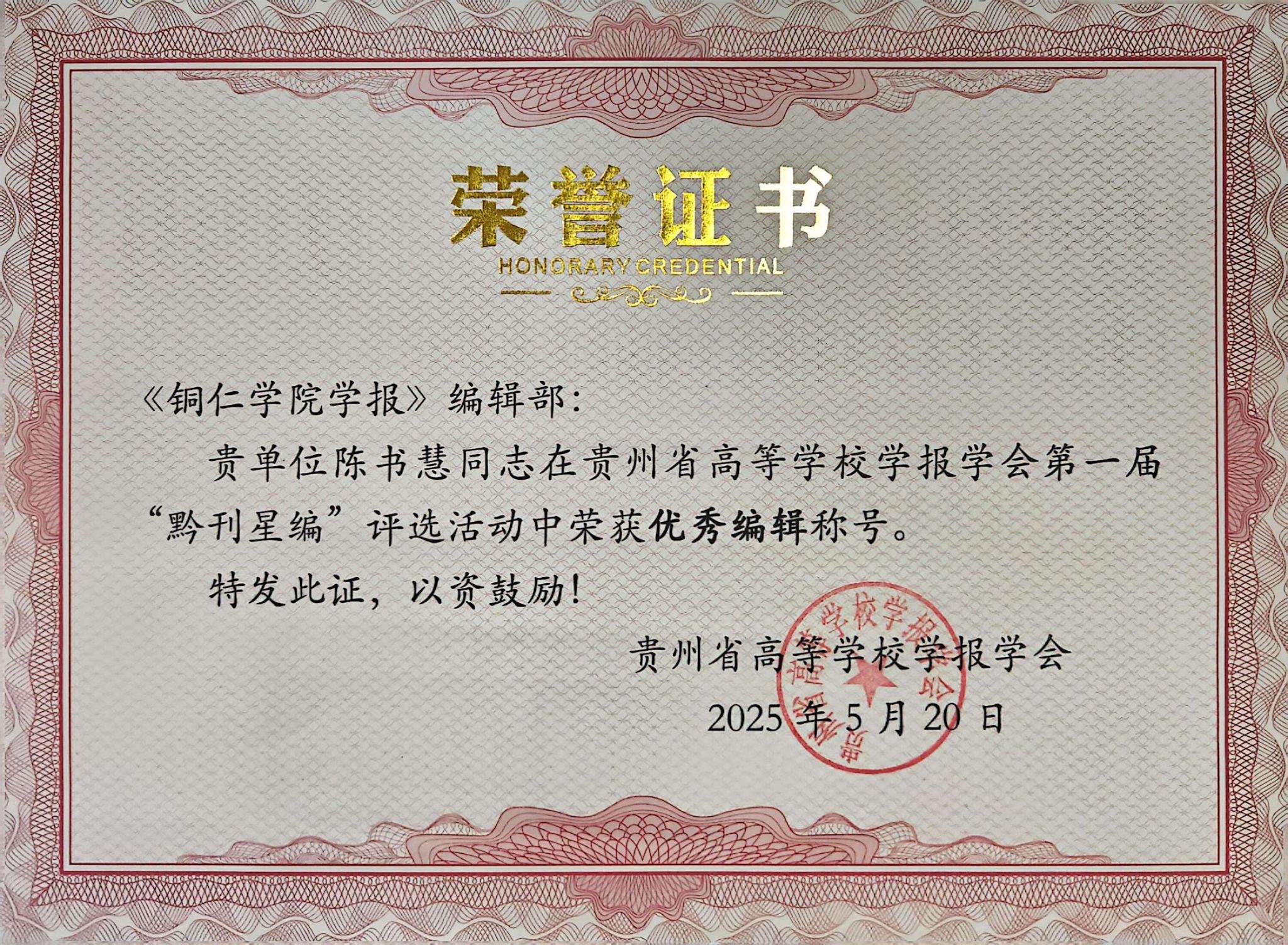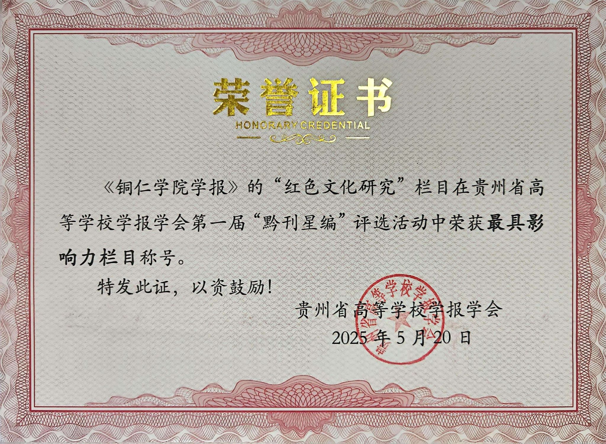 近日,在贵州省高等学校学报学会开展的首届“黔刊星编”优秀案例推选活动中,《beat365中国唯一官网学报》编辑部多个项目入选,其中《beat365中国唯一官网学报》获“优秀社科期刊”称号,“红色文化研究”专栏获“最具影响力栏目”称号,学报编辑陈书慧同志被评为“优秀编辑”。