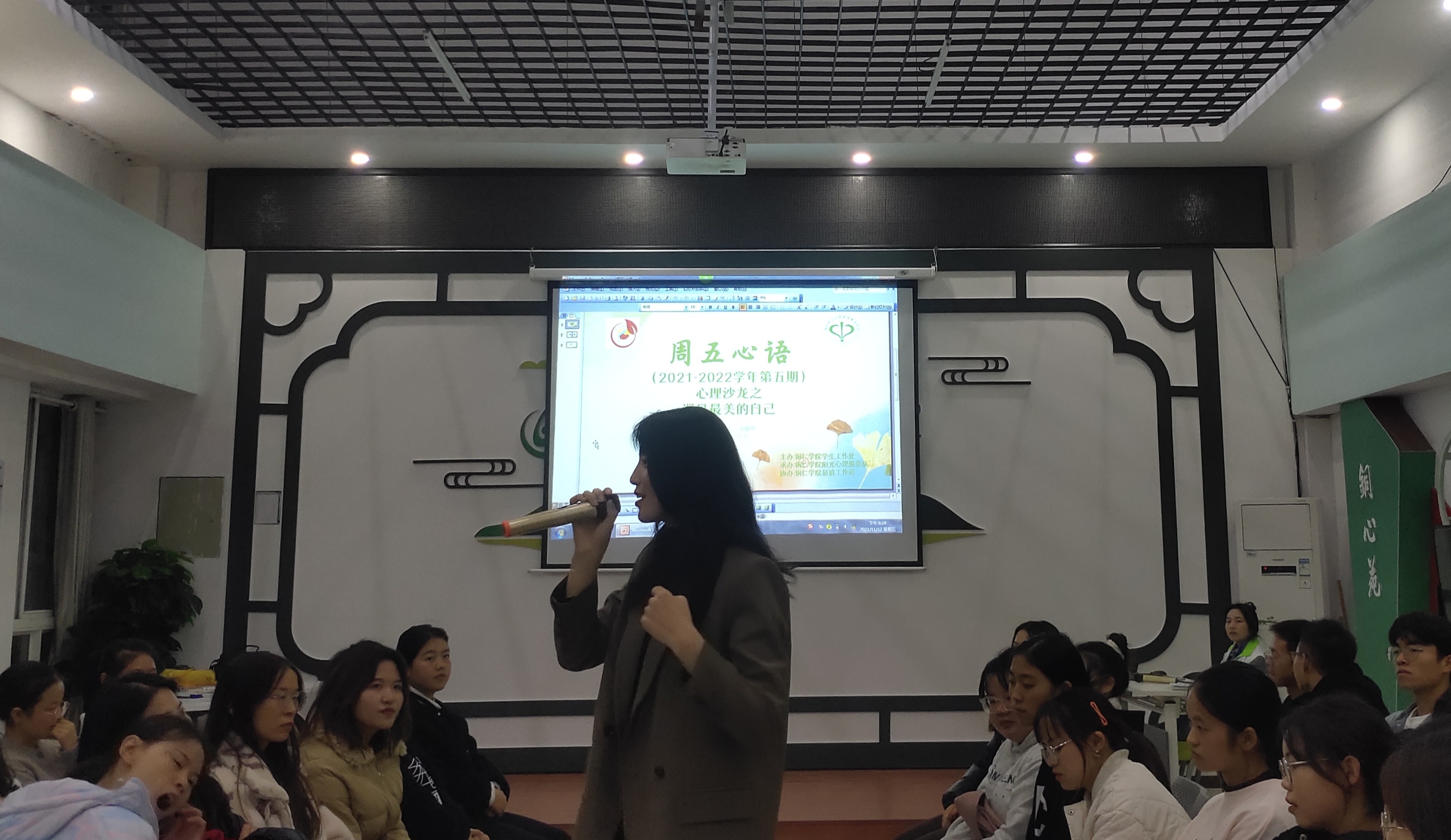 11月12日晚,beat365官网在心理健康教育中心多功能室开展了以《遇见最美的自己》为主题的心理沙龙活动。此次活动由21级教育一班的冯柳丹同学主持分享,来自不同学院的30名同学共同参与。