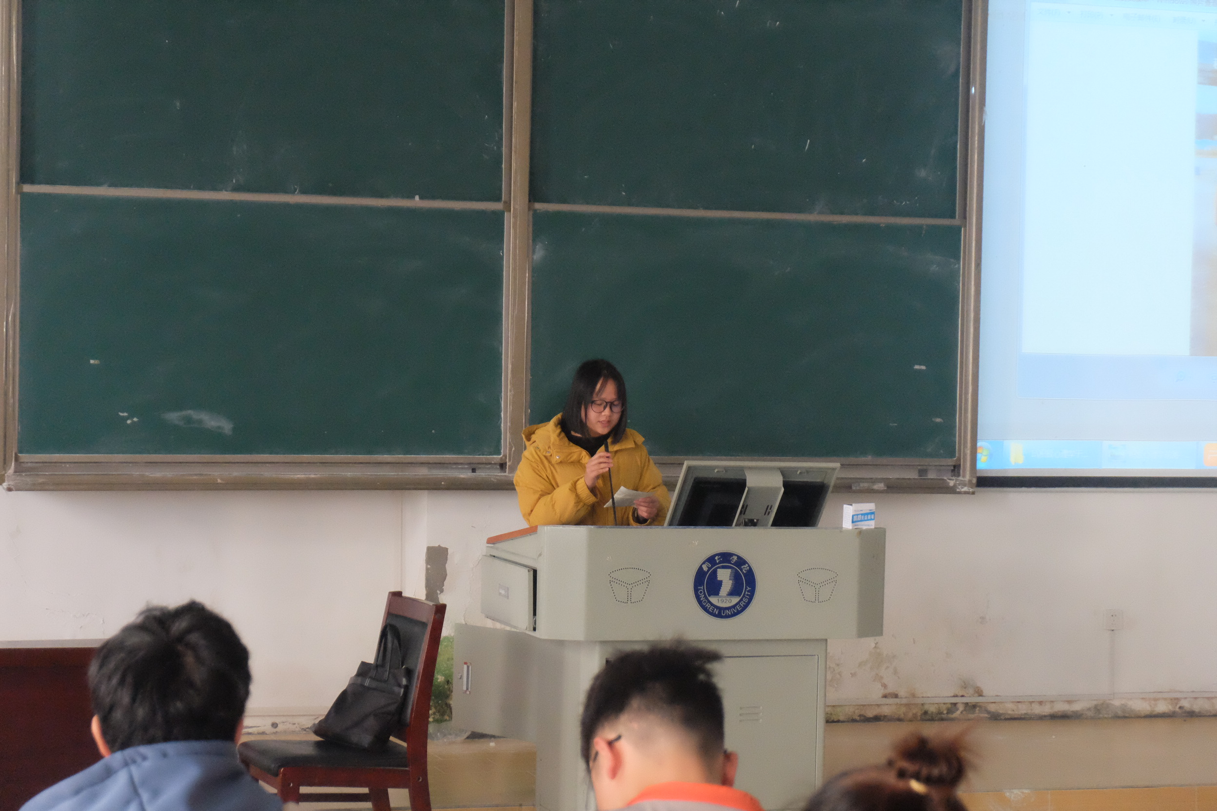 培训中,贾老师提出“中国大学生拥有哪些积极心理”的疑问。同学们回答到“真诚、谦虚、热情”等。之后贾老师具体从各年级重点培养的积极心理品质有所不同侧重进行举例说明,并对各年级的教育或领导方案的实施内容做了归纳总结。
