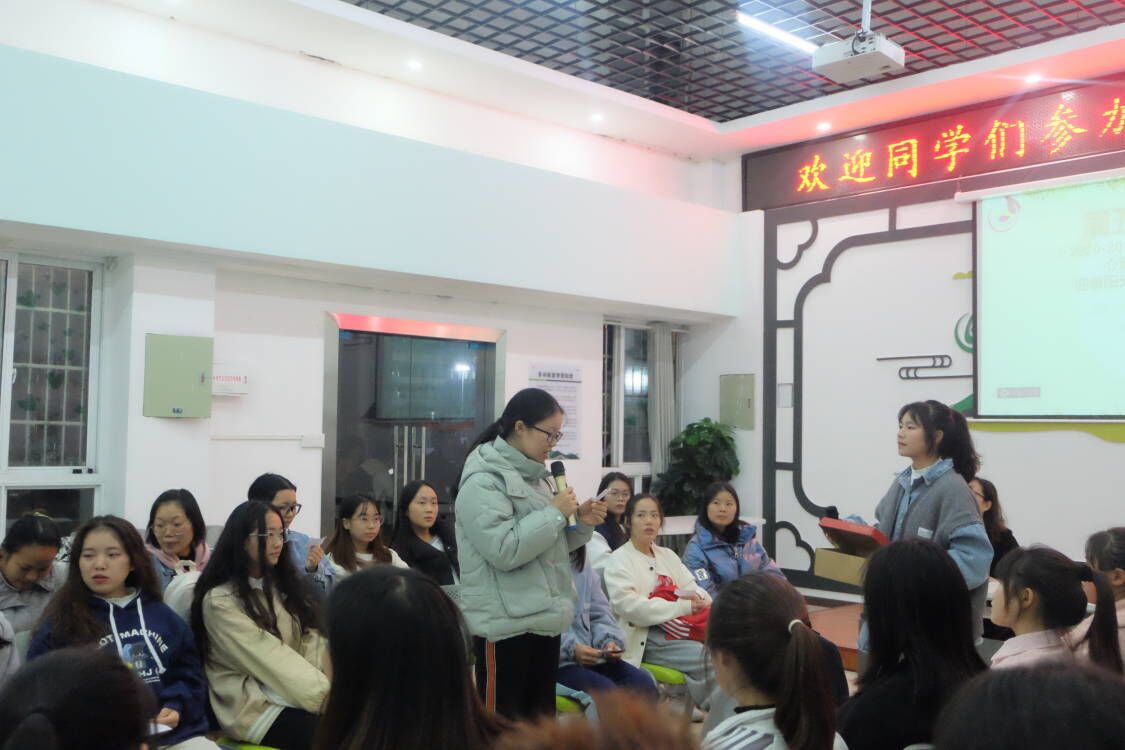 随后,夏老师又问同学们自己所学的专业是否自己选择的还是被迫选择的,大部分同学都说是自己选择的,因为自己喜欢这个专业所以选择这个专业,极少数同学说自己被迫的,但在之后学习中,也慢慢的对该专业产生兴趣。了解同学们的想法后,夏老师分享了自己的一些故事,她告诉同学们当初自己所学的专业甚至是现在所从事的工作自己都不怎么喜欢,但通过时间的沉淀,这一切都在悄然的改变。也举了自己身边朋友的例子目的是希望同学们在接下来的学习生涯中做出更好的成就。不负自己,不负韶华,不知不觉中活也动接近了尾声。