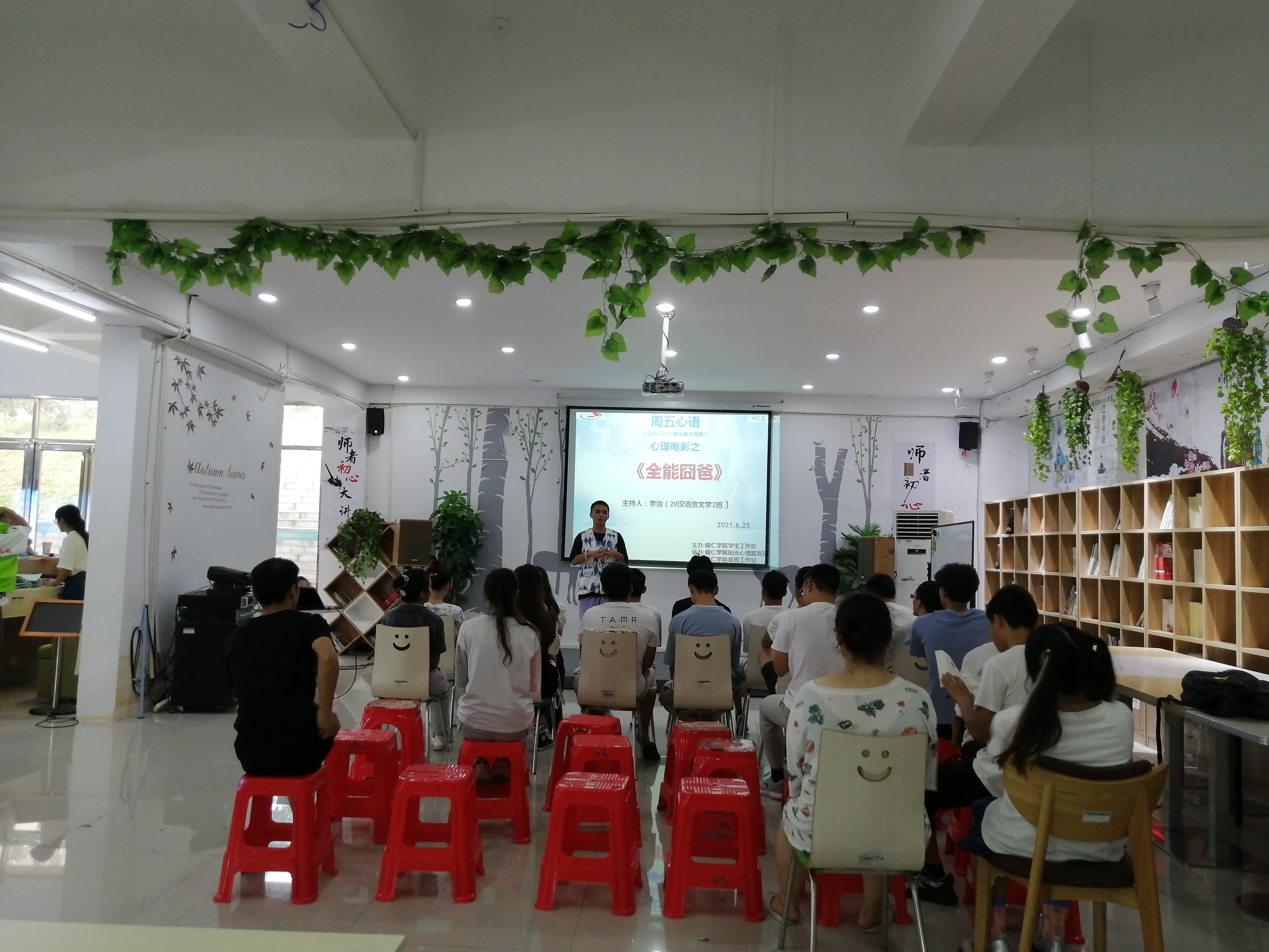 6月25日晚,beat365官网心理健康教育中心在学生事务服务中心如期开展本学期第十四期周五心语活动,本次活动由2020级中国语言文学类2班的李治同学为大家分享心理电影《全能囧爸》,来自不同学院的30名同学参与本次活动。