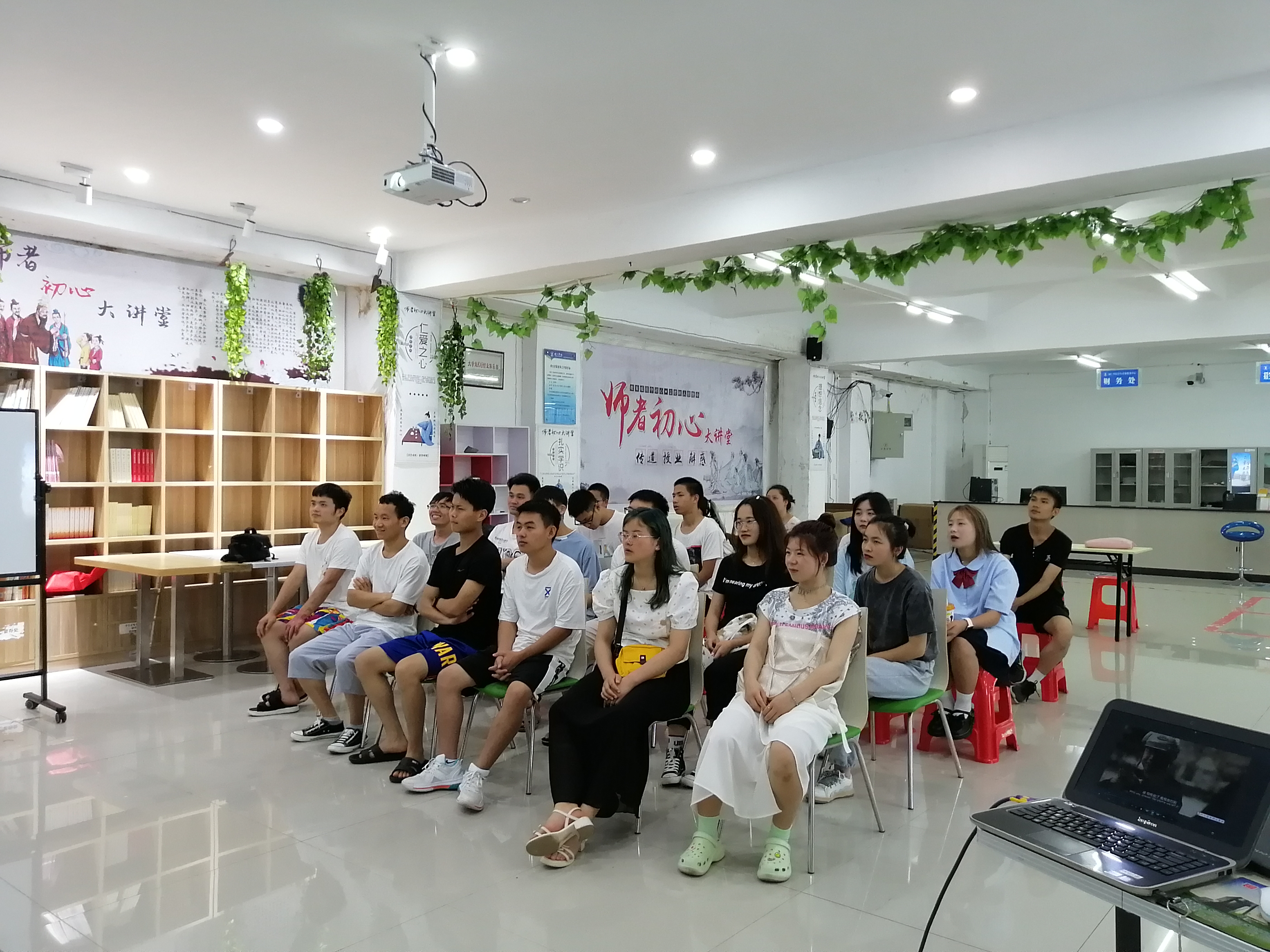 接着,分享者为大家播放电影《全能囧爸》。整部电影大约持续了90分钟,影片讲述了一位老父亲有一个二十几岁的儿子却还没过叛逆期,心寒的父亲不仅要操心儿子的工作和情感生活,还要帮他找工作、找媳妇、找票子,在经历一番波折后,父亲还为了证明自己,激励儿子,踏上了选秀路途。经过父亲的努力,最终他站上了表演舞台,为自卑的儿子树立了榜样,同时也证明了自己。在播放过程中,大家非常认真的观看了整部电影。