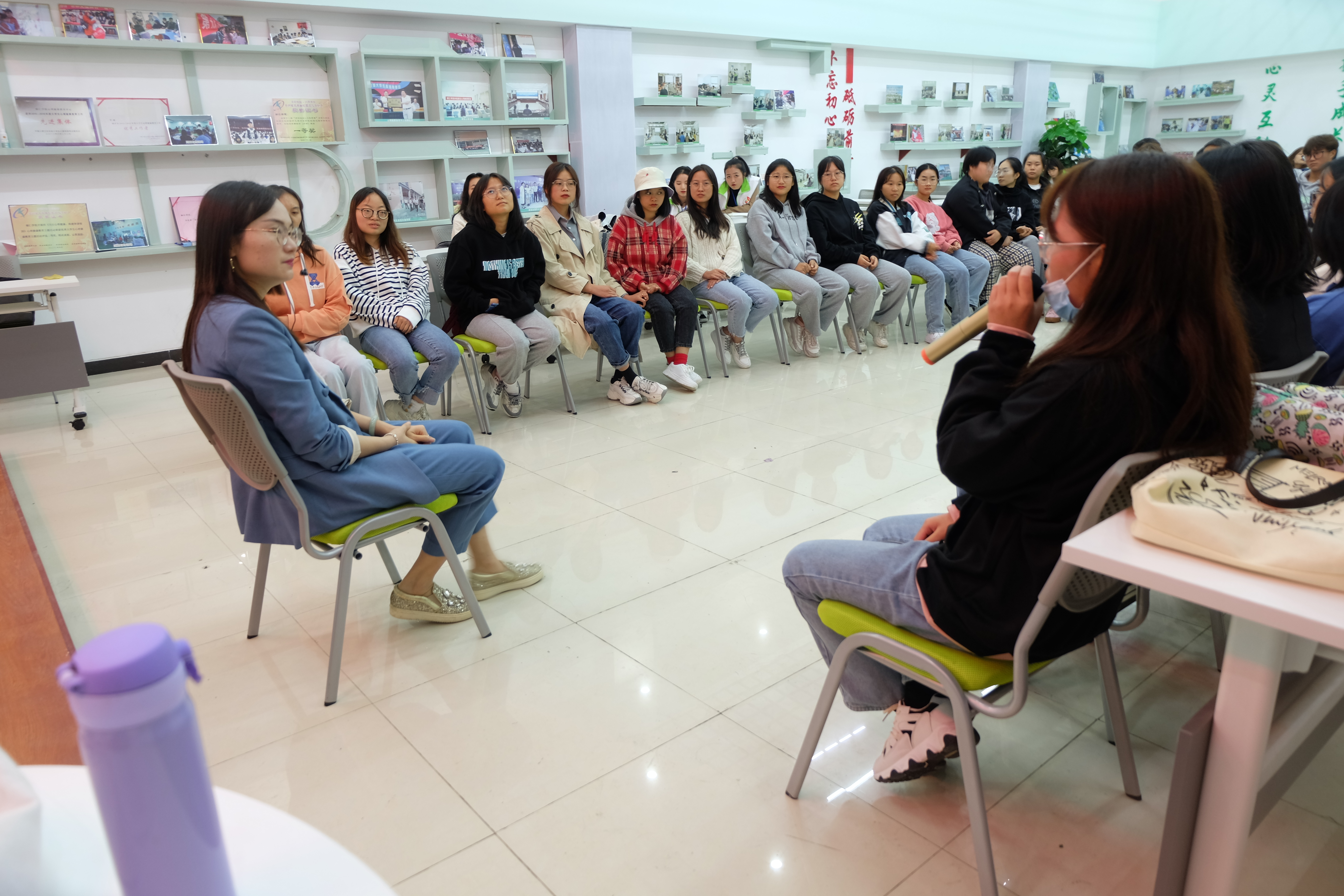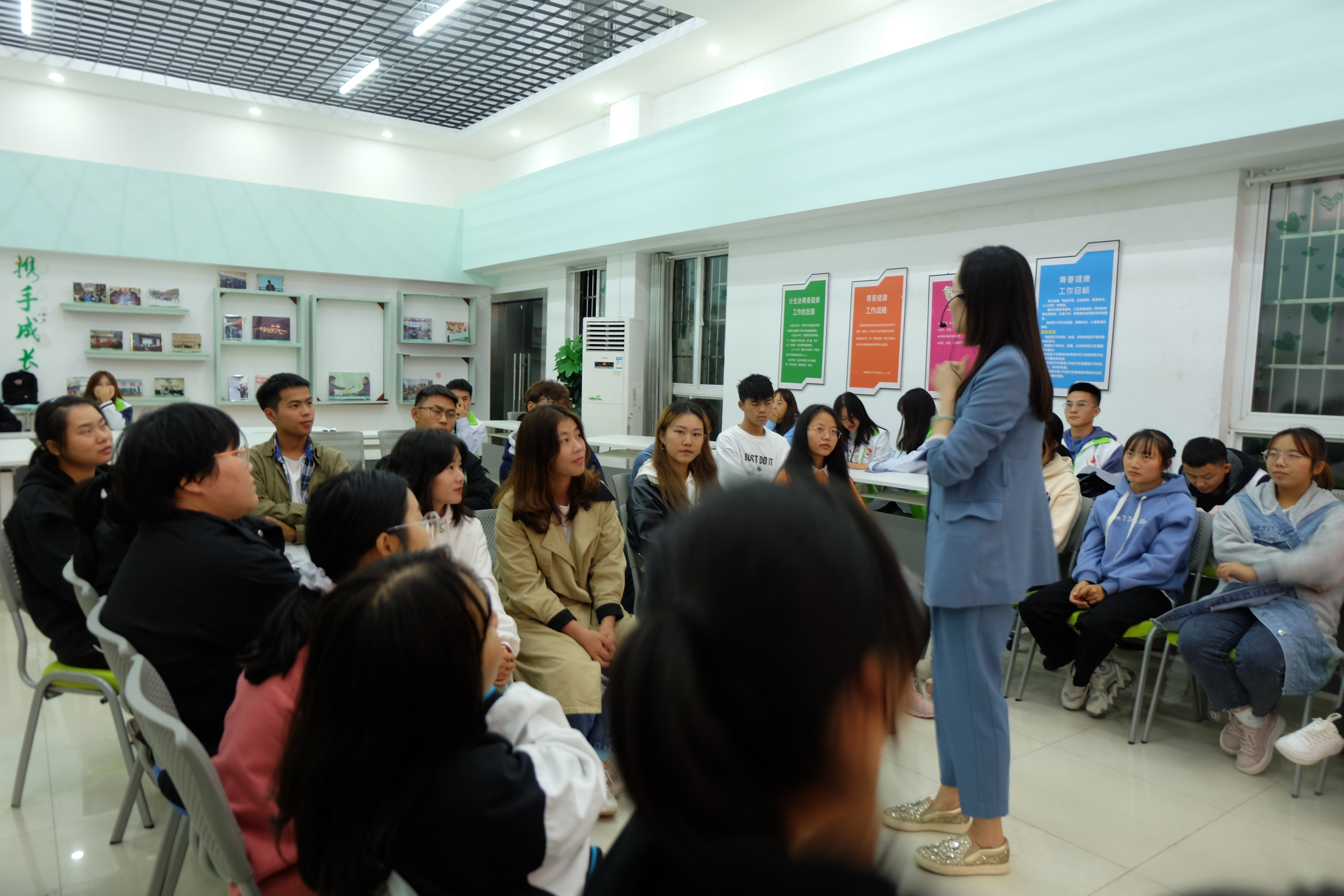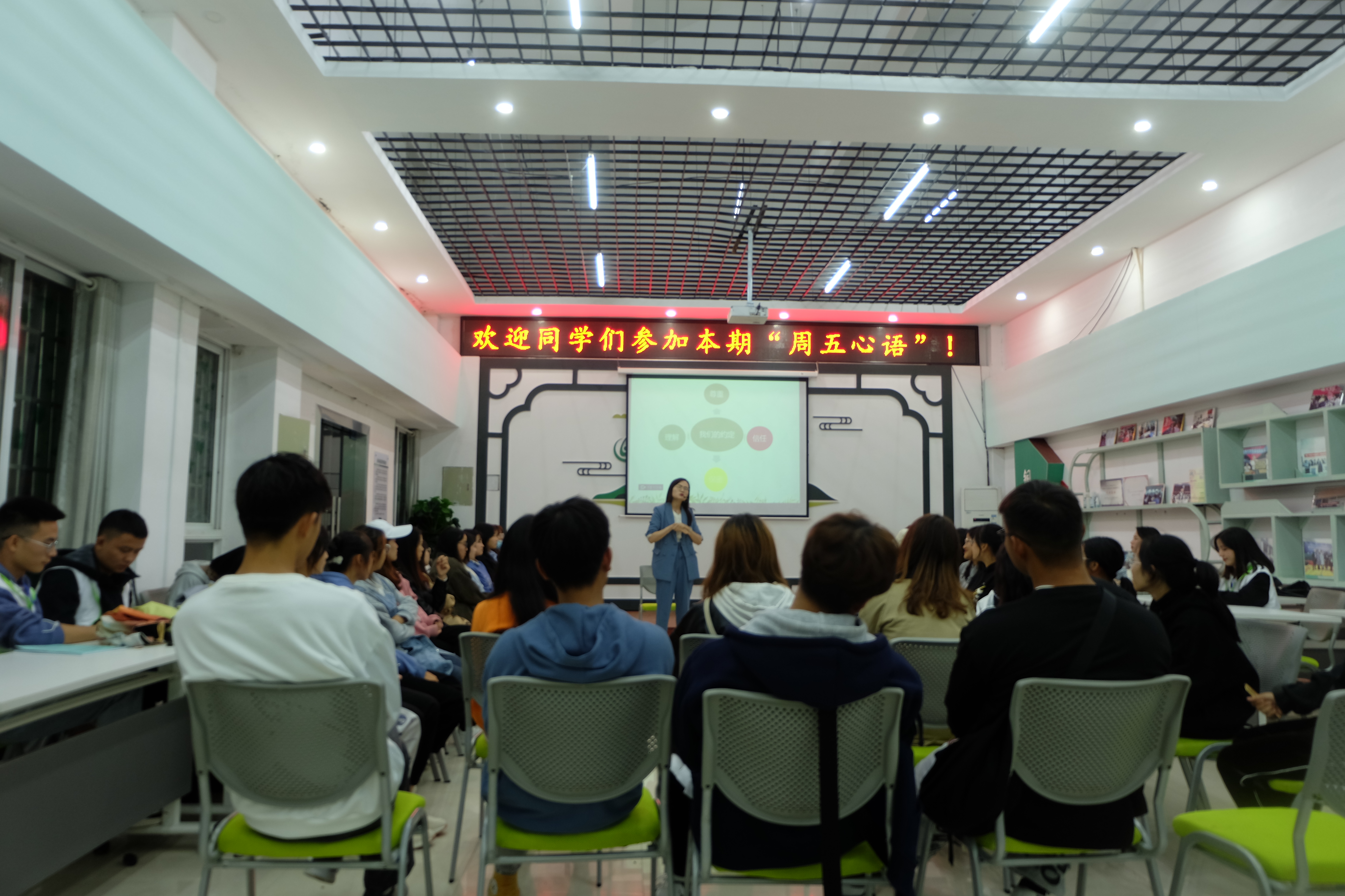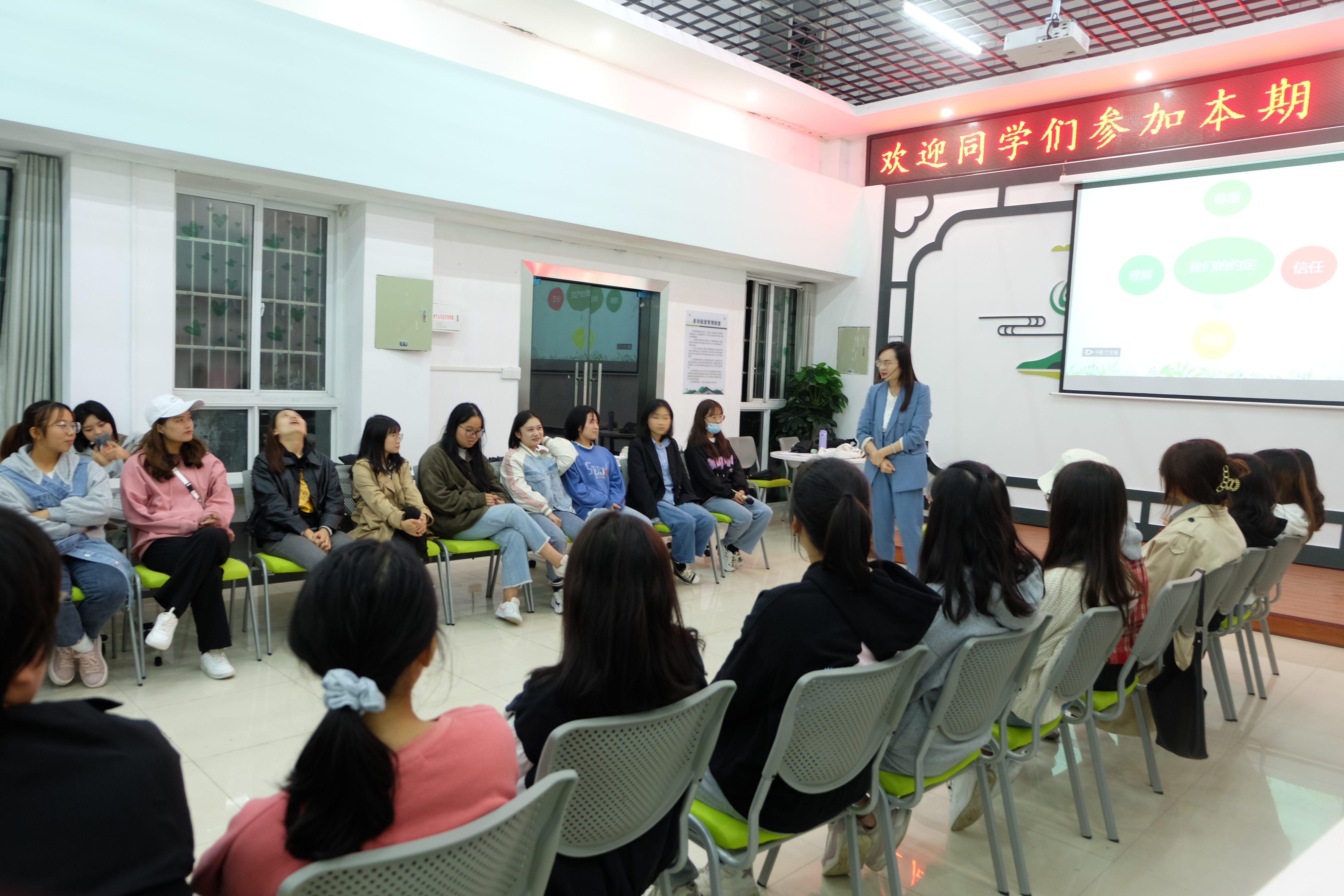 ,beat365官网心理健康教育中心在多功能室开展了以《恋爱中的心理学》为主题的心理沙龙活动。此次活动由心理健康教育中心兼职心理教师、国家三级心理咨询师王诗尧主讲,来自不同学院的