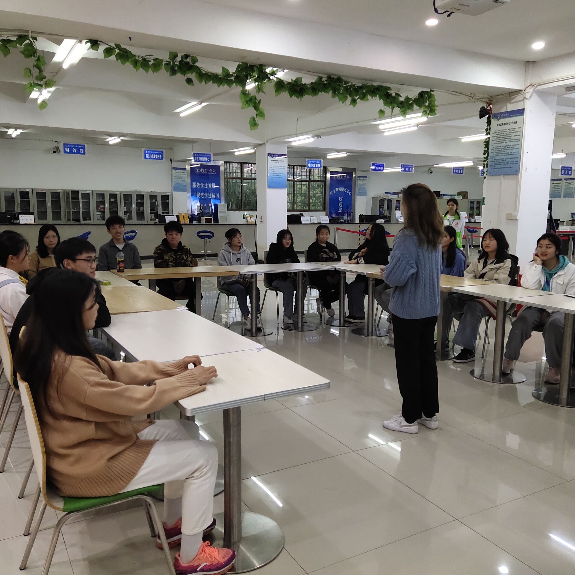 随后,主持人与同学们一起讨论了产生社交恐惧症的原因以及解决的办法。为拉进同学之间的距离,活跃现场气氛,主持人组织同学们开展“动物园里有什么”游戏,同学们也通过这个游戏打开了心扉,并分享了自己关于社恐产生的原因和解决的办法。