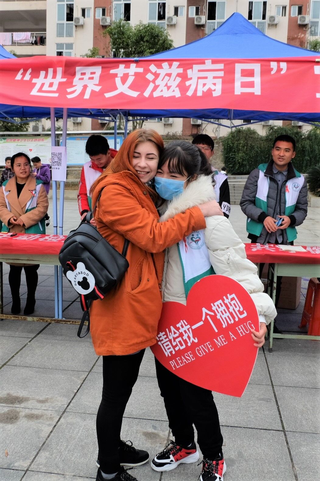 同学们和志愿者拥抱