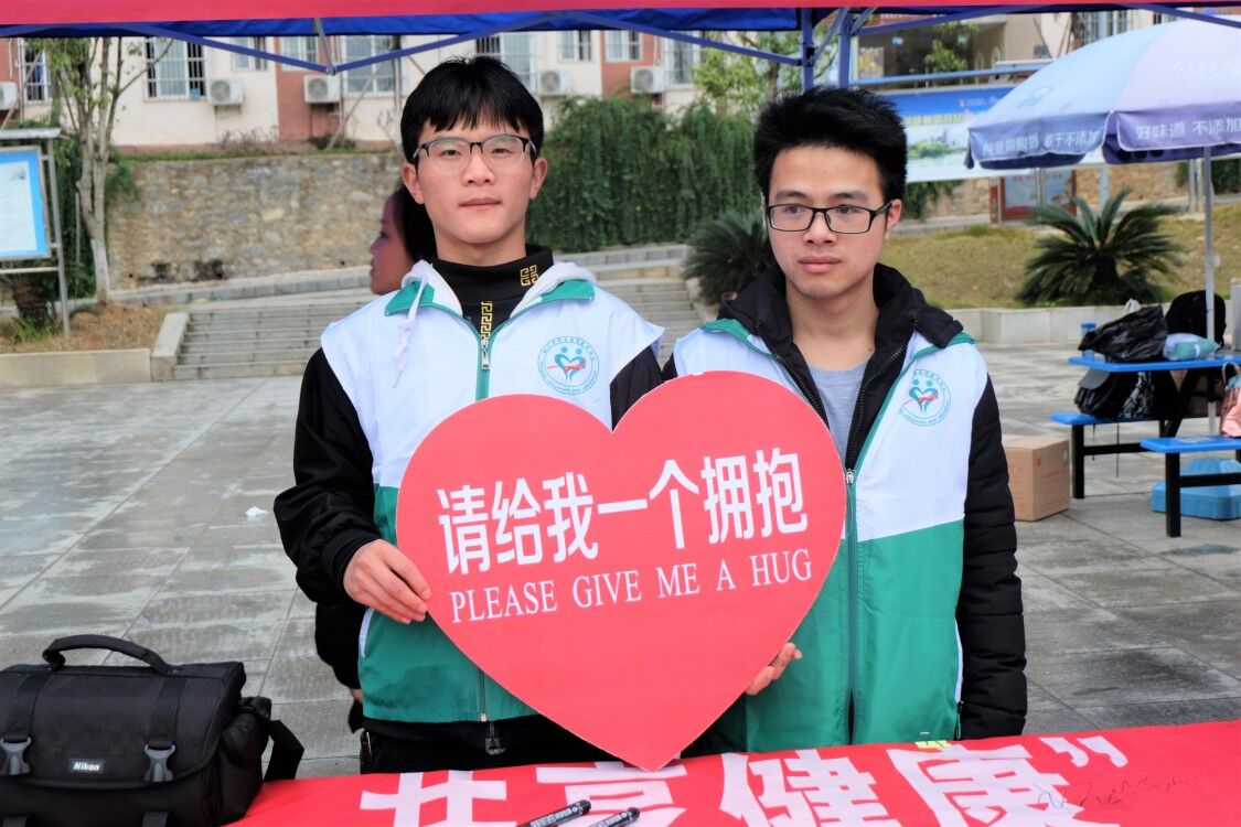 志愿者现场呼吁拥抱