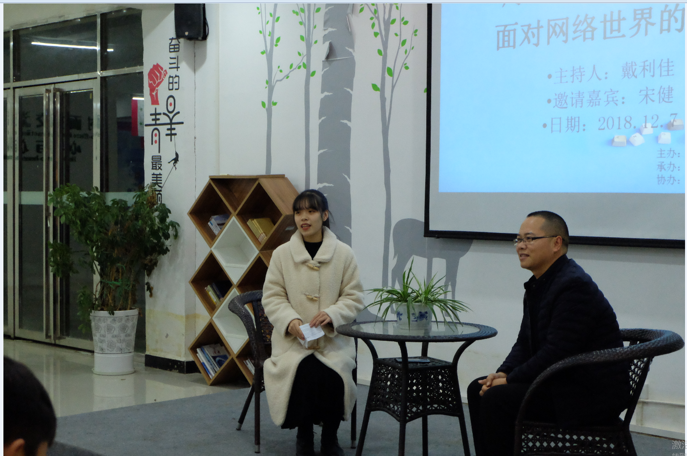 本次活动以访谈的形式来和同学们交流互动而展开。首先,主持人和宋健老师与同学们坐到一起探讨手机对我们生活的影响,网络的利弊关系。同学们开始说手机对自己生活的影响,很多同学都提到了用手机逛淘宝、看电影、打游戏等之类的事情。并且都说到手机对自己学业的影响。宋健老师就同学们提到的这些现象发表了意见,告诫同学们如果不合理的利用网络,它会让我们的思想堕落,丧失斗志,更甚至于会让我们本来一片光明的人生变得黯淡无光。