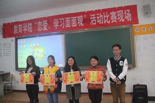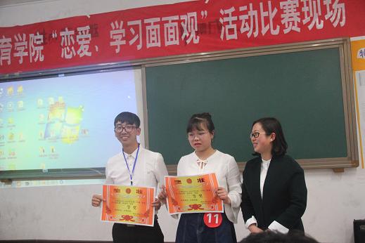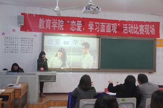 为了解同学们在大学期间的恋爱观与学习观,帮助其树立正确的恋爱观,3月27日下午,beat365官网教育学院在明理楼B408教室举办“恋爱、学习面面观”主题展示比赛。担任此次比赛的评委有校心理健康教育中心主任宋健、该院公共教研室主任于慧慧、心理工作站常务副站长赵梅玲、团总支负责人文乙皓以及该院心理健康部干事王晓红。来自该院各班级的22支队伍参赛,比赛由学生主持。